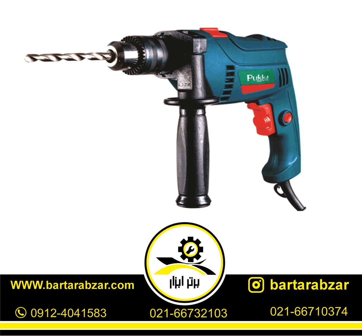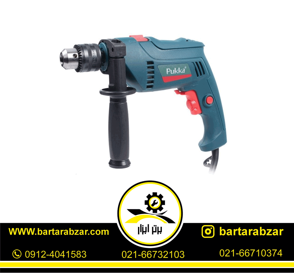 مجموعه ابزار شرکت Pukka ساخت کشور چین کیت و ست دریل چکشی سه نظام آچار خور 13 میلی متر با لوازم جانبی قدرت خروجی 550 وات با راندمان بالا به کمک بدنه خوش دست دارای خط کش عمق سنج مناسب سوراخکاری چوب، فلز، بتن و دیوار قابل استفاده برای مصارف کارگاهی، عمومی و کارهای نیمه سنگین مجهز به کلید تغییر آسان بین حالت ساده و چکشی به صورت کشویی میزان گردش در حالت آزاد موتور از 0 تا 3000 دور در دقیقه دیمر تنظیم سرعت بر روی سوییچ در هر دو جهت چپگرد و راستگرد به همراه دسته کمکی، پیچ گوشتی، سر بیت، خط کش، مته و کیف BMC